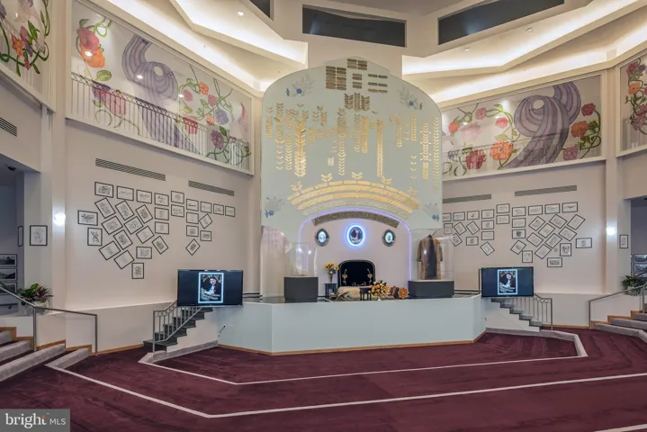Unique Opportunity: Religious center with attached residence on almost 5 acres. Over 20,000 sq ft under roof. Spacious central gathering area topped with center dome. Three level grand foyer leading to an elevator and 2 wide stairways to central area. 4 large meeting /class rooms encircle the gathering area on the upper level. Hallway to residence boasts three additional library/meeting rooms. Control room for audio/visual presentations. Two additional rooms on main level, currently used as offices. Large residence with 4 bedrooms, 3 full plus 2 half baths. Could possibly used for for children’s classrooms. Solar panels on the roof keep utility cost to a minimum. Two car garage on lower level of residence. The entire property is surrounded by a solid privacy wall. Over 40 parking spaces. Land in front and back of building could be built out for additional parking if needed.