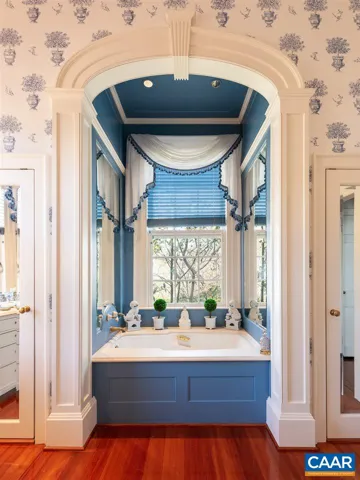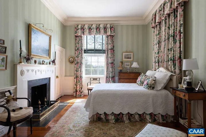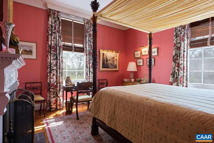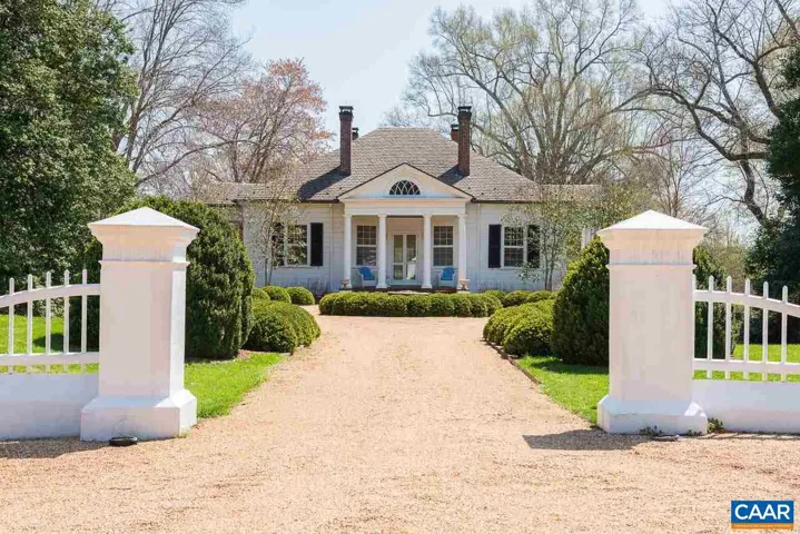 Nestled in the foothills of the Blue Ridge Mountains is this Palladian inspired masterpiece called Edgemont. Surrounded by 572 acres of rolling Virginia farmland, with the Hardware River running through the lush fields, is a home whose design is reputed to be the only remaining private residence attributed to Thomas Jefferson. Complete with tennis court, pool, pool house, and guest houses. Fiber internet throughout the property now. The land is not under conservation easement.,Granite Counter,White Cabinets,Fireplace in Bedroom,Fireplace in Dining Room,Fireplace in Master Bedroom,Fireplace in Study/Library