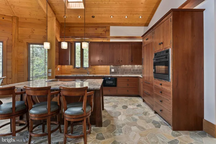 -Hamatreya’s curvilinear design creates a seamless blend between indoor and outdoor spaces. A well-proportioned and defined great room, kitchen, and dining area add charm and functionality, accented by handcrafted pottery, custom lighting fixtures, and a grand stone fireplace clad in copper.