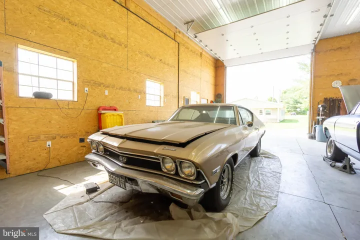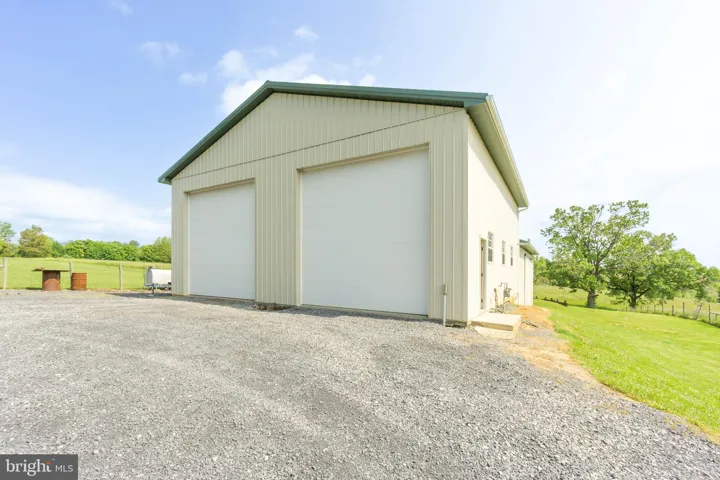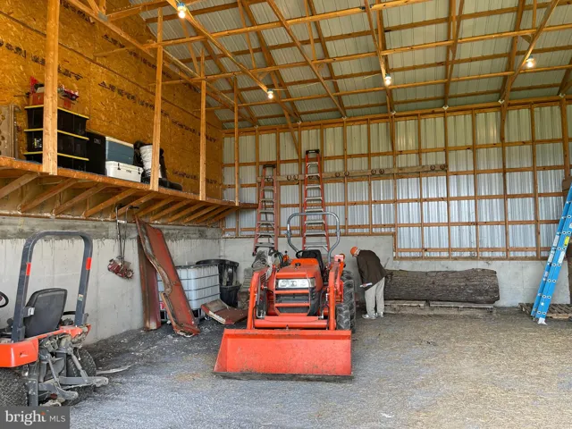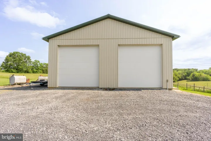 Large, oversized garage 40 x 40 with natural gas heat for use all year round including two 14′ insulated roll up doors