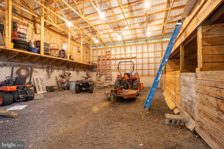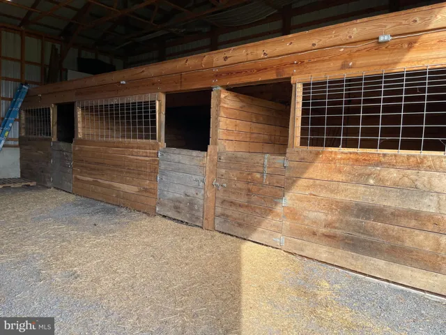 Attached is a 40 x 40 barn with three stalls and the availability to increase the number of stalls to six. The middle stall is larger of the three. The stall floors are concrete with rubber mats for easy cleaning with drains in all three. Room for storage in the barn above the stalls on both sides.