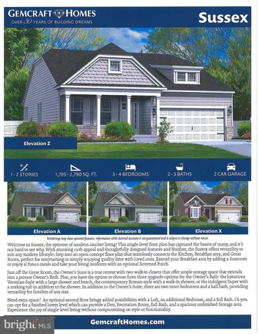 Sussex Model offered by Offered by Gemcraft Homes New Construction. One of Gemcraft Homes newest and most popular house plan designs. The Sussex boasts single level living at its best! Featuring 3 bedrooms and 2 full baths, 1795 sq ft., 2 car garage. Home offers an open concept floor-plan with an airy great room that adjoins the dining area and kitchen. Features include:granite countertops, 42″ cabinets, 9′ Ceilings, SS Appliances. The owner’s suite includes an abundance of space with walk-in closets and private bath. Pictures may have upgraded features/options not included in base price. Home is “TO BE BUILT”. Additional elevations and options are available to design your own customized home with all your personal touches. Call for mare information and your private showing. Captains Cove Golf & Waterfront Community amenities offer: 9 Hole Pristine Golf Course, 3 Pools (2 Outdoor/1 Indoor), Fitness Center, Boat Ramp, Basketball, Tennis & Pickle-Ball Courts, Playground, Walking & Biking Trails, Picnic Area, Dog Park, Security and so much more. Captains Cove is located on Virginia’s Eastern Shore and conveniently located close to major Metropolitan Areas along the East Coast. Within 3 Hours of Baltimore MD/Washington DC/Philadelphia PA, 5 hours from New York, 1 Hour from Ocean City MD, 2 hours from Virginia Beach/Norfolk/Hampton VA and only 20 minutes from the notorious Chincoteague Island VA.