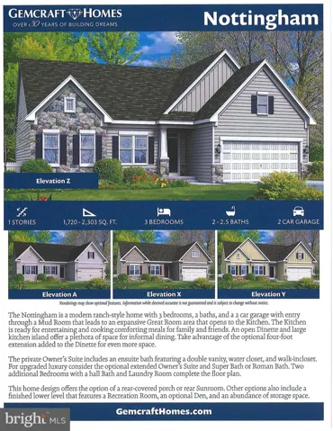 The Nottingham is a 3 bedroom, 2 bathroom ranch style home with a spacious great room that is open to the kitchen with an island and separate dining room. Offered by Gemcraft Homes New Construction. Perfect for entertaining! Enjoy the large primary bedroom with it’s own en-suite bathroom with a walk-in closet. Customize this home to fit your needs with options such as the sun room, half bath and 4 foot extensions. Home is “to be built” and the photos of the model home may include builder options. Pictures may have upgraded features/options not included in base price. Home is “TO BE BUILT”. Additional elevations and options are available to design your own customized home with all your personal touches. Call for mare information and your private showing. Captains Cove Golf & Waterfront Community amenities offer: 9 Hole Pristine Golf Course, 3 Pools (2 Outdoor/1 Indoor), Fitness Center, Boat Ramp, Basketball, Tennis & Pickle-Ball Courts, Playground, Walking & Biking Trails, Picnic Area, Dog Park, Security and so much more. Captains Cove is located on Virginia’s Eastern Shore and conveniently located close to major Metropolitan Areas along the East Coast. Within 3 Hours of Baltimore MD/Washington DC/Philadelphia PA, 5 hours from New York, 1 Hour from Ocean City MD, 2 hours from Virginia Beach/Norfolk/Hampton VA and only 20 minutes from the notorious Chincoteague Island VA.