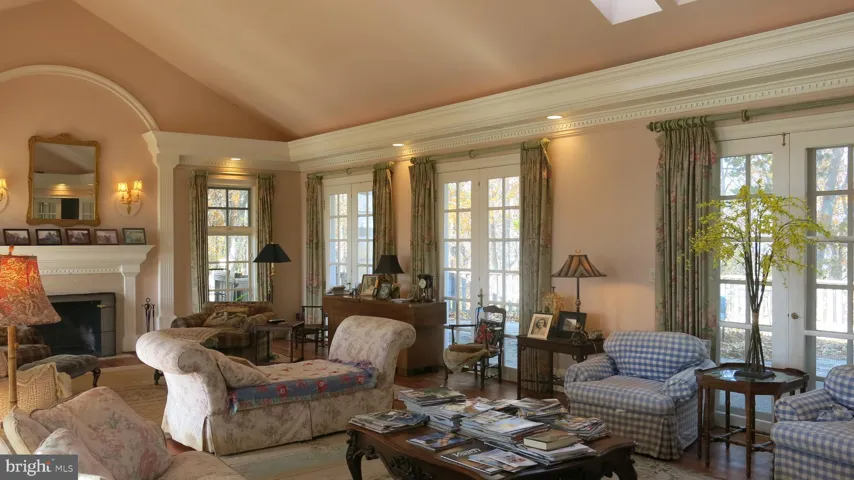 The Main House was built as a true “hall” with large public rooms and private spaces along a long, mostly single story, framework. The basement and upper story are not visually apparent upon first view. Built in 1993, Liberty Hall was expanded approximately 10 years later to its current configuration with large dining room and pool terrace additions. While the large rooms have an imposing grandeur, they are extremely comfortable gathering spaces for smaller intimate groups as well. The exterior is weathered cedar shingles with a rubberized slate roofing shingles and bluestone coping and terraces off the kitchen and around the pool.