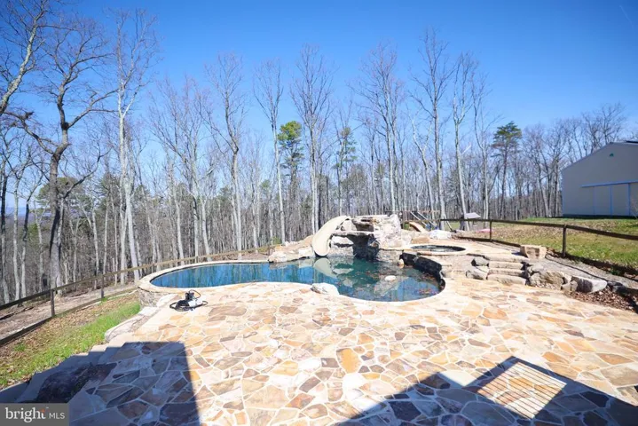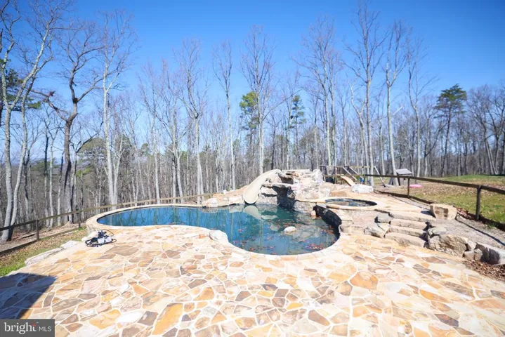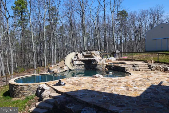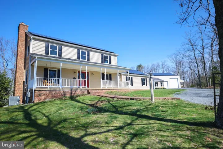 This gorgeous home is located on 12+ wooded acres, yet it’s still just minutes to town, shopping, schools; – Verizon FiOS Internet! – Solar provides $2500 of electricity per year; battery backup ensures power in the event of an outage ; The kitchen has been remodeled w/granite & stainless-steel appliances; Both upper-level bathrooms have been renovated; Inviting pool with waterfall, built-in hot tub, water slide, heater and stone patio; energy efficient double-pane windows; – 4-5bd/3.5ba – Dual-fuel heat (heat pump + propane) – Main level has a wood burning fireplace insert for those cold days; the detached 1-car garage was converted to a workshop which has heat and AC; the oversized out-building will fit a full sized Class-A RV, boat, ATV’s, tractors, and more!!