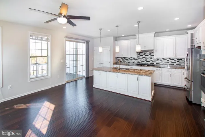 Welcome to this stunning and modern living in an exquisite 2-car garage end unit townhome, set in the highly sought-after Loudoun Valley community! You will be stunned by the gorgeous interior that exudes sophistication at every turn, from the elegant tones to the gleaming hardwood flooring. Tall ceilings with recessed lighting, and ceiling fans soar above the open-concept main gathering areas, while large windows bring in the brilliant sun and frame neighborhood views. The home welcomes you into an inviting foyer, the main level features a massive living room that flows into the dining area. The modern kitchen is a chef’s delight! It features a double oven/microwave combo, Stainless Steel Appliances, a custom tile backsplash, a large pantry, and granite countertops, and tall cabinets providing both style and functionality. The countertops extend to the multi-seater breakfast island. The kitchen flows into family room areas creating an open and inviting space for both everyday living and entertaining. The breakfast area leads into a large and private Trex deck overlooking a pond. Perfect for outdoor barbecue parties or enjoying quiet morning coffee with serene views. The powder room completes the main level. The upper level features a grand Master suite with His and Her walk-in closets with custom built-ins that offer abundant storage space, ensuring your clothing and accessories are well-organized. The master bathroom features a dual vanity and stand-in shower with a bench. The two spacious guest bedrooms feature closets with built-in shelves. The guest full bathroom features a dual vanity and stand-in tub shower. The laundry room is conveniently located close to all the bedrooms. The bonus room is perfect for storage or can be used as a hobby space. The lower-level walk-out features a recreation room with a door leading to the private backyard. Fourth bedroom with attached full bathroom. The mudroom has custom cabinetry for extra storage and use. The highlight of this home is the serene backyard, which features a custom new expansive concrete porch, green space for gardening, and is fully fenced in, offering plenty of privacy, the perfect spot for outdoor entertaining and relaxation.