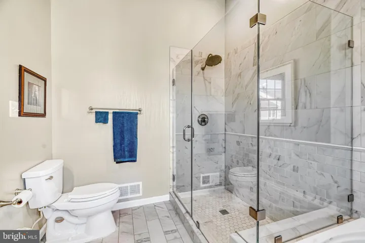 Over $130K in recent upgrades. Main level features beautiful Brazilian cherry hard wood floors and crown molding throughout. On the main level you have a half bath, living room, dining room, 3 sided gas fireplace and kitchen. Amazing updated chef’s kitchen with Quartz counters, soft close cabinets, stainless steel appliances and induction cooktop. Walk out from main level onto new deck perfect for entertaining. Upstairs you will find 3 bedroom and 2 full baths. Oversized primary bedroom and spectacular bath and walk in closet. Fully finished walk out lower level features custom storage, porcelain floors, family room, laundry and half bath. Walkout from lower level onto new patio. Garage and driveway parking plus 2 additional parking passes for street parking. Large storage room located in garage. Partially fenced rear year. The following updates were done in 2017 All 4 baths fully remodeled, complete kitchen remodel, whole house new paint, new HVAC, new flooring all 3 levels, all outlets and switches replaced, all door knobs and hinges replaced. New windows 2014. New doors 2009. New garage door and opener 2018. Water heater 2023. Deck 2022. Roof 202