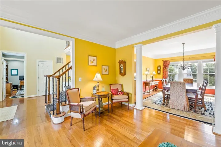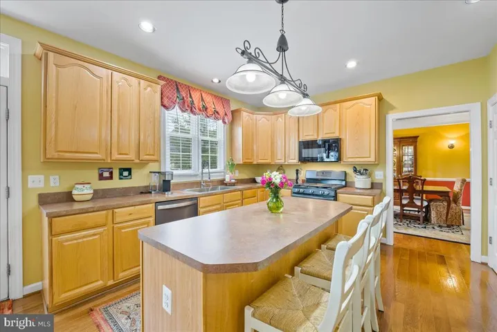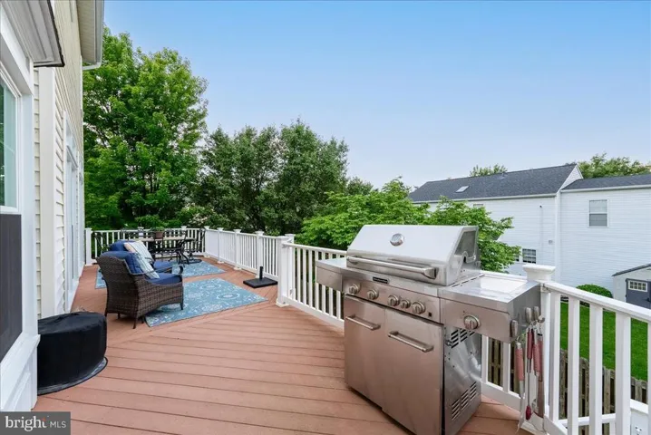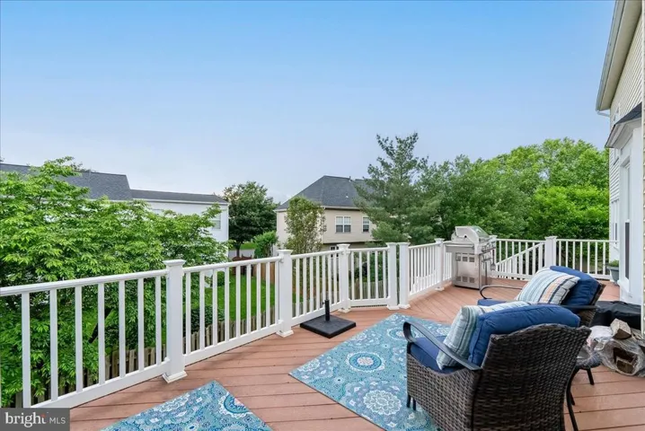 Upon entering, you are greeted by a grand two-story foyer that leads to a private study, formal living and dining rooms, large kitchen and a spacious, light-filled family room. The kitchen features wood cabinets, updated appliances & sink, a 5-burner gas range, pantry, an island, & eat-in breakfast area that opens to the family room. From the kitchen, step out onto the expansive deck, perfect for outdoor entertaining. The main level also includes a convenient laundry room with garage access and powder room.