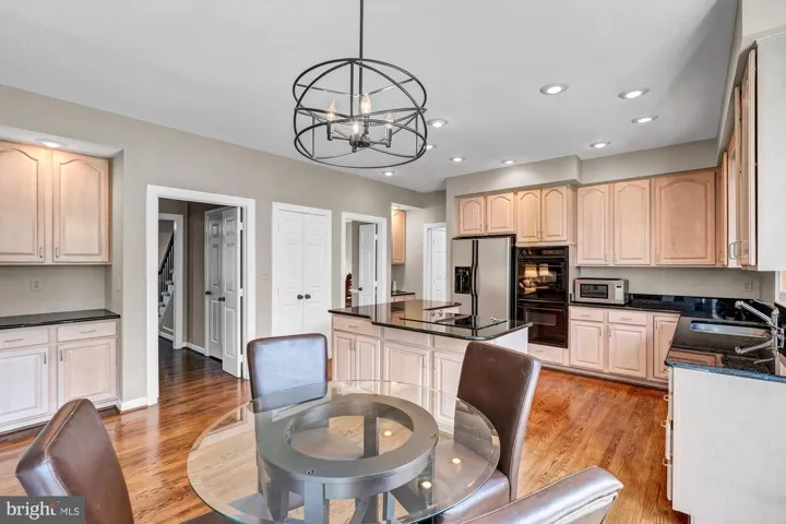 Welcome to Little Rocky Run! This beautifully updated single family home offers 7 bedrooms, 4.5 bathrooms, and over 4,800 square feet of living space. Step inside to a bright and open main level with a hardwood-floored foyer, formal living room, dining room, and a dedicated office/library tucked away for quiet productivity. The highlight of the main level is surely the modern kitchen, boasting gleaming hardwood floors, top-of-the-line stainless steel appliances, and a chef’s dream workspace with a double-wall oven, granite countertops, and a cooktop center island. Cozy up next to the inviting brick fireplace in the living room, or relax and take in the views of the expansive yard through the huge window. Outdoors, there’s a leveled lot featuring an underground sprinkler system, ensuring a lush green haven, and a large rear deck perfect for gatherings. The finished walk-up lower level basement provides a recreation room, a game room, another bedroom with a full bath, tons of storage space, and recessed lighting throughout. This meticulously maintained home spreads across three comfortable levels and is move-in ready. Enjoy peace of mind in a well-maintained community with a low monthly HOA fee of $98 that covers trash removal, access to a refreshing swimming pool, and a variety of amenities. Close to parks, shops, and restaurants.