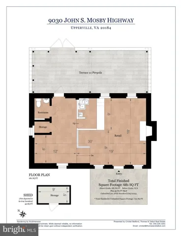 9030 John Mosby Highway is a charming fieldstone building located in the heart of the village of Upperville and built in the late 1800’s. This building has been operating as an additional space for the neighboring BlueWater Kitchen and it is ready for your next venture! Zoned Village Commercial (VC) this space is best suited as a professional office, antique shop or other light retail. The parking area behind is shared with BlueWater Kitchen. The property was fully renovated in 2013 with new professional landscaping, flagstone walkways and expanded terraces, a large covered rear patio, a stucco-walled parking area with an electric EV charging station, a new septic system, a small storage shed and it is completely handicapped accessible. Come see the possibilities. Commercial equipment inside the building can be removed. See survey, site plan and floor plan in documents section. Buried fiber internet is available. A real gem!