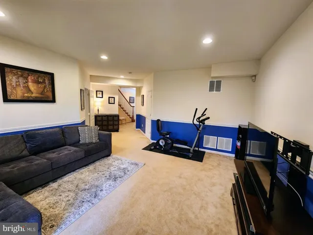 Lower Level: 4th bedroom and a full bathroom offer versatility as a guest room or second office| An expansive rec room is ideal for entertainment and relaxation.
