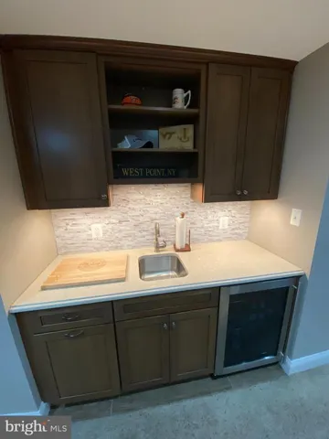 *Basement Kitchenette: Quartz premium countertop, Wine Fridge and cabinets are high quality Kraftmaid made of Solid Cherry wood.