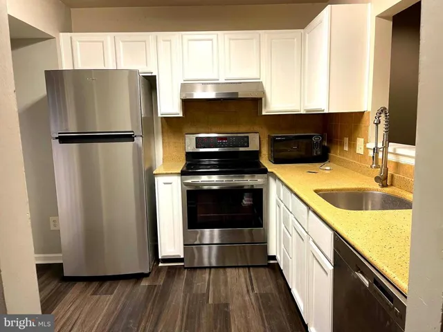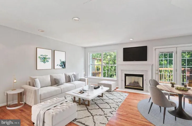 Beautiful community. two-master bedrooms, three-level townhouse backs to woods.. Newer hardwood on main floor, newer kitchen w/Corian counter tops & tiled back splash. Beautiful fireplace. Basement with bath and walk out, and another room that would serve as bedroom 3.