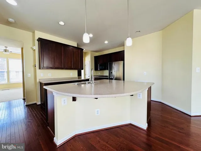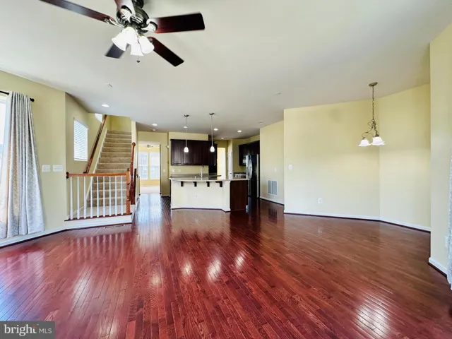 Stunning and spacious 3-level end unit townhouse with 2 car front loading garage. 3 beds, 2 full baths, and 2 half baths with hardwood flooring on the main level. The home welcomes you into an inviting foyer and large recreation area with access to a spacious fenced-in backyard from the walk-out lower level. Access to the garage and half bath complete the lower level. The main level features a sun-filled living room, an adjoining dining area, and a half bath. A large eat-in kitchen with an enormous island that opens up to the family room with a gas fireplace. Relax and enjoy the view from the new oversized Trex deck located right off the family room, perfect for living and entertaining! New carpet in the living room.