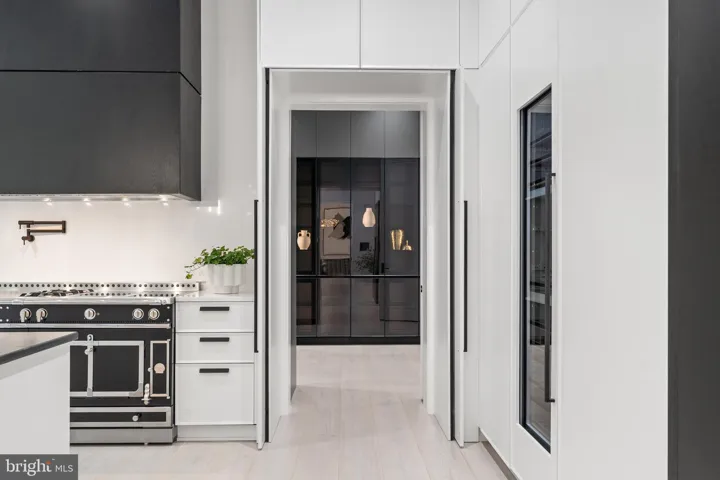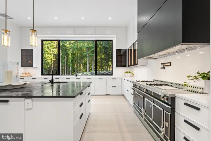 The heart of the home is the European-inspired kitchen, where Italian cabinetry complements the classic La Cornue range, custom-made in France. An adjacent breakfast room and a separate chef’s kitchen equipped with professional-grade appliances ensure every culinary need is met, whether for intimate family dinners or grand soirées.