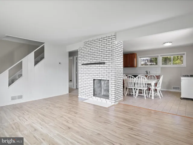 The living room exudes warmth with its beautiful wood flooring and brick fireplace. The unique upstairs retreat offers additional bedrooms with sloped ceilings and built-in shelves, ideal for a home office or playroom. This home is perfect for families seeking comfort and elegance in a peaceful setting.