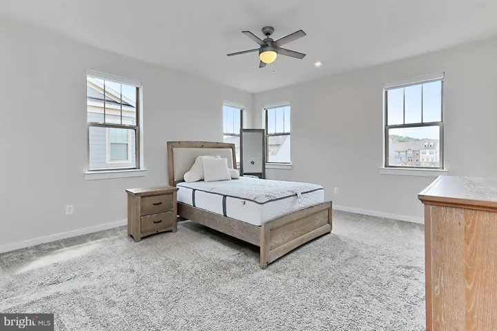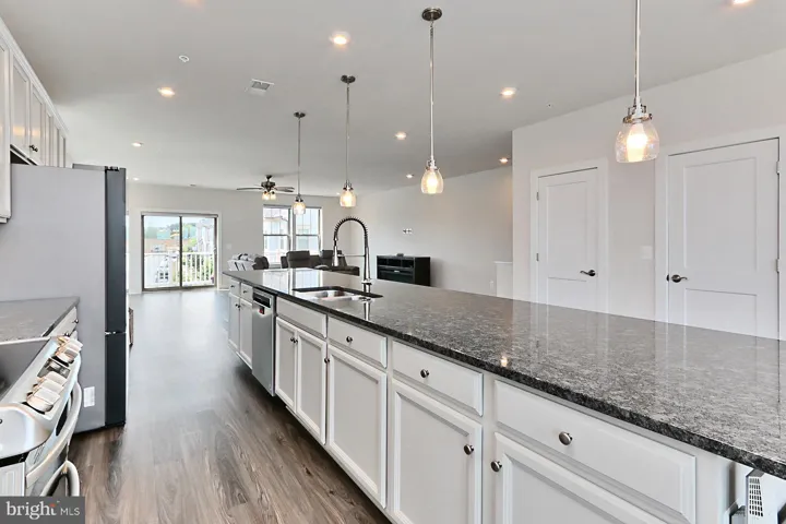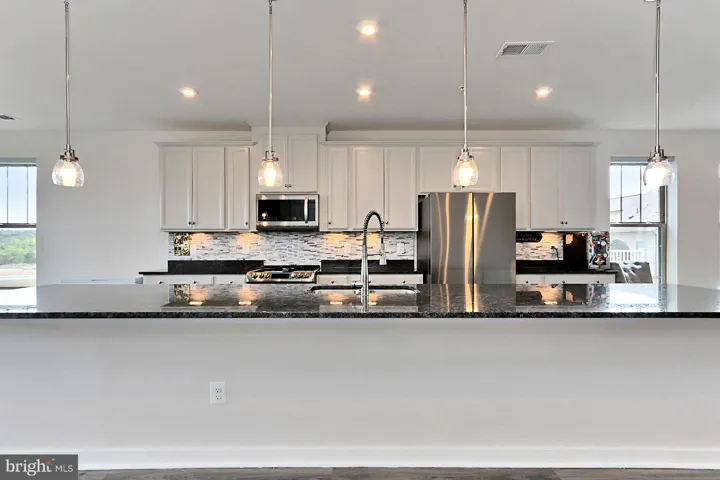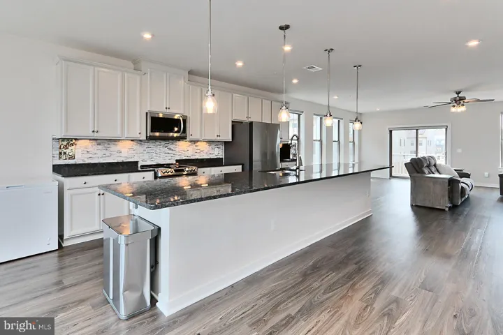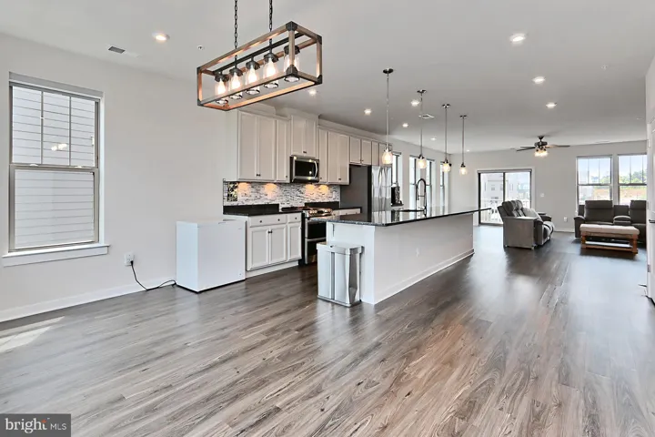 Lovingly maintained, this striking 3-bedroom, 2.5-bath stacked condo style townhouse in Leesburg’s Tuscarora Village in VA might be what you’re looking for! Abundant windows flood the 2,568 sq ft interior of this end-unit dwelling with brilliant natural light. With wide stairwells and doors, recessed lighting, and LVP flooring, the open-concept living areas make entertaining effortless. Adjacent to the chandelier-lit dining alcove, your contemporary kitchen displays many chef-inspired elements including stainless steel appliances, ample cabinetry with under-lights, gleaming granite countertops, a chic backsplash, and an expansive multi-seater island under stunning pendant lights.