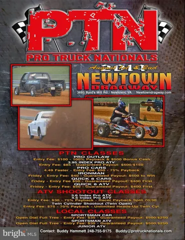 Newtown Dragway in Newtown, Virginia has been in operation since 2000 and it is FOR SALE! Check out their website and social media for a list of the current events at this very active and popular sand drag facility! 30 minutes from Richmond, 1 hour from Fredericksburg and 90 minutes from Chesapeake…Right in the middle of large population centers, however rural enough as to not be affected by urban sprawl that is the downfall of a lot of racing facilities around the country. Rarely does an opportunity come along on the East Coast to purchase a fully operating and modern racing facility, and now’s your chance!