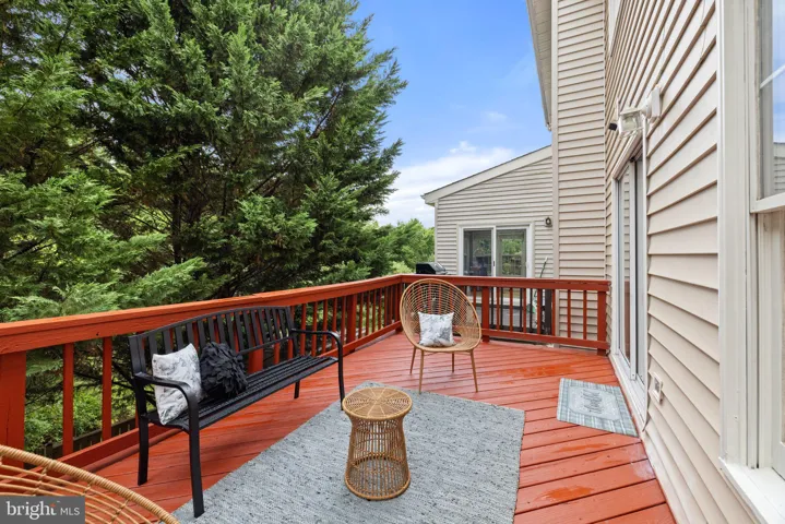 MAIN LEVEL HAS FOYER, SPACIOUS SUNKEN LIVING /DINING ROOM WITH 3-SIDED GAS FIREPLACE * POWDER ROOM* 9 FT CEILINGS* KITCHEN WITH GRANITE COUNTERTOP* BREAKFAST AREA WITH MORNING LIGHT* WALK OUT TO LARGE DECK OVERLOOKING WOODS* FINISHED LOWER LEVEL (880 SQFT), HAS REC ROOM (440 SQFT) WITH FIREPLACE* BEDROOM & FULL BATH* WALK OUT TO REAR YARD* FENCED *