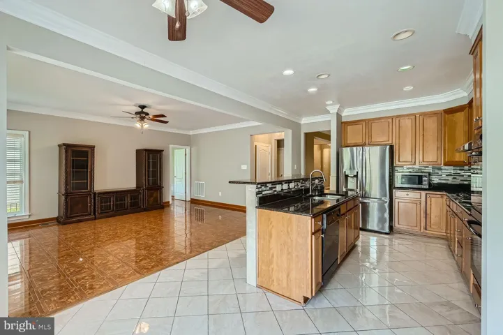 Freshly Painted, magnificent 5 Bedroom 4.5 Bath Stone And Vinyl Home With 4704sf +/- Of Finished Living Space With 2 Oversized car Garage, Covered Front Porch And Tons Of Outdoor Living Space Sited On A Premium Lot Fronting To Open Park Space in Perry Hall Meadows. Main Level Showcases Plantation Shutters, Ceiling Fan And Crown Molding, Main Level Powder Room, Gourmet Eat-In Kitchen, Crown Molding, 42″ Cabinets, Tile Backsplash, Granite Countertops, Table Space, Bump Out, Pantry, Stainless Steel Appliances, Double Wall Ovens With Convection, Microwave, Electric stove, Side By Side Refrigerator With Water And Ice Dispenser, Dishwasher, Disposal, Double Sink, Pass-Thru To Family Room With Breakfast Bar, Formal Dining Room , Crown Molding, Transom Windows, Plantation Shutters, And View Of The Back Yard As Well As Column Accents Leading To The Adjacent Family Room, electric Fireplace, Crown Molding, Ceiling Fan, Transom Windows, Recessed Lights And Storm Door Access To The Rear Deck Composite Deck With Pergola And Vinyl Railing, Perfect For Outdoor Dining And Entertainment. Main Level Laundry With Vinyl Floor, Washer And Dryer, Upper Level Features Primary Bedroom Suite With Double Door Entry, 2 Walk-In Closets, Crown Molding and Hardwood Floors, Primary Bath With Ceramic Tile Floor, Separate Shower With Ceramic Tile Surround, Soaking Tub, Water Closet And Dual Vanities , Guest Bedroom ( Bedroom 2) With wood floor Ceiling Fan And Crown Molding And Attached Bathroom With Ceramic Tile Floor And standing Shower With Ceramic Tile Surround, Bedroom 3 With wood floor And Ceiling Fan, Bedroom 4 With wood floor And Full Hall Bath With Ceramic Tile Floor And standing Shower With Ceramic Tile Surround. Lower Level Offers Bonus Room With Carpet and Utility Room, Expansive Recreation Room . The basement also has a bedroom with a full bathroom. The basement is walk up and from here you can walk outside. BASEMENT HAS THE POTENTIAL TO BE RENTED SEPARATELY