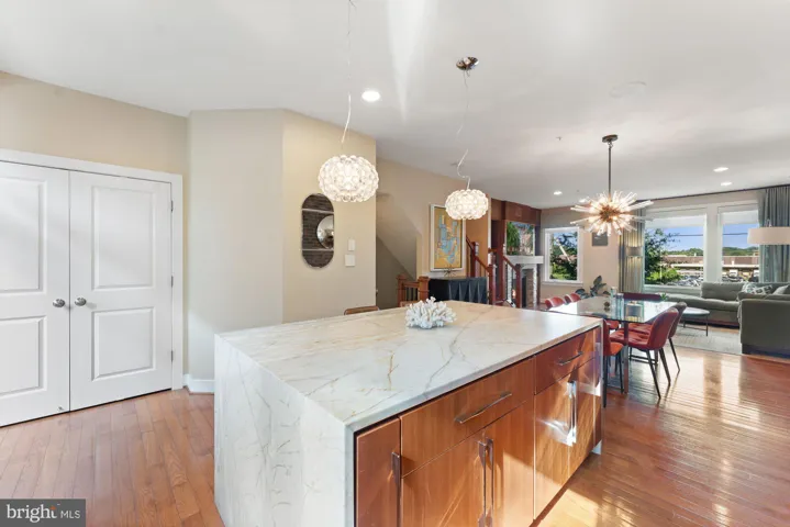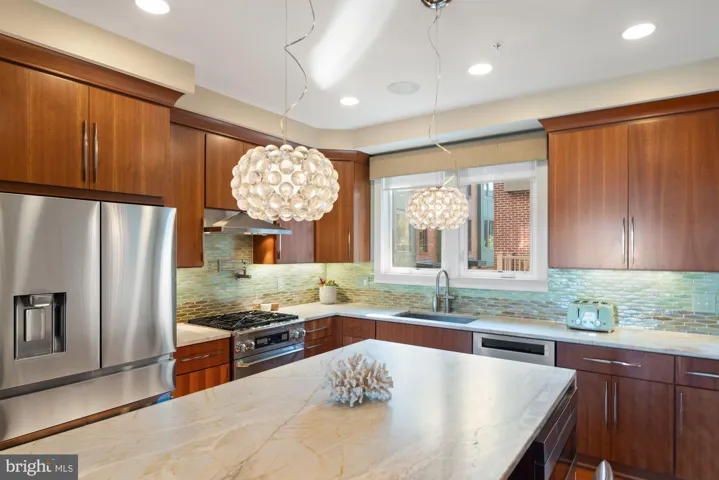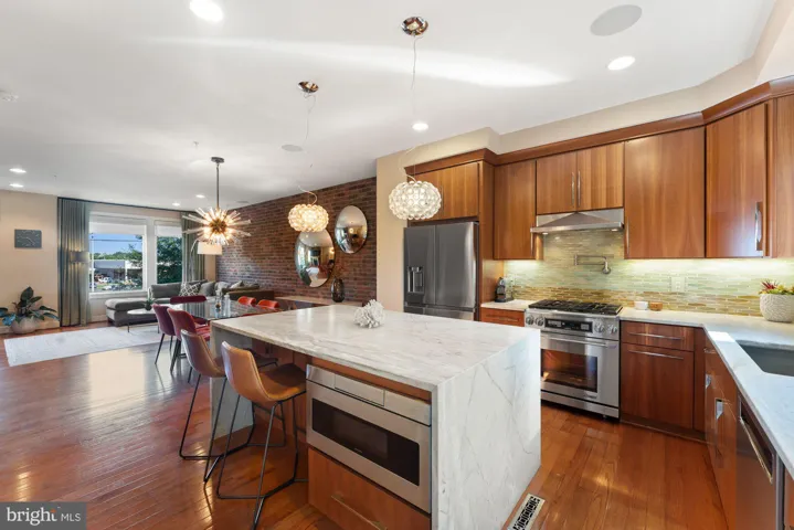 Luxurious modern townhome in the heart of the Mosaic District, boasting over $200K in upgrades. This LEED-certified home is perfect for entertaining, featuring 4 levels, 4 bedrooms, 3.5 baths, and an open floor plan with premium amenities including exposed brick on three floors, energy-efficient systems/windows and a comprehensive security and entertainment system controllable via mobile devices. The first floor welcomes you home with a versatile office/bedroom with custom window treatments and exposed brick walls. The second level showcases a premium kitchen with quartzite countertops, custom cherry cabinets, and high-end stainless steel appliances. The living room includes custom built-ins, surround sound, and a gas fireplace. The owner’s suite boasts custom lighting, a walk-in closet, and a luxurious ensuite bath with a jetted soaking tub. Additional bedrooms also feature ensuite baths with premium upgrades. The top floor features a recreation room with a wet bar Built-in, dual-sided fireplace, and a customized sundeck with Pro-turf, an awning with wind sensors, and a gas grill. Enjoy community amenities and a prime location near shops, restaurants, a weekly farmer’s market, community events, and a free shuttle to the Metro. This home is truly one-of-a-kind and won’t last long!
