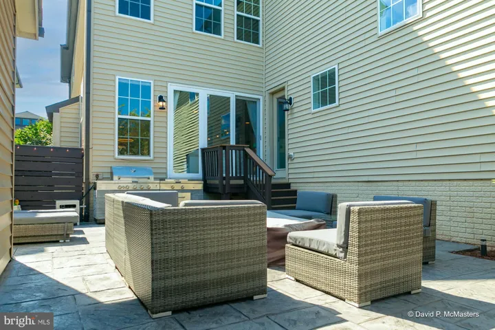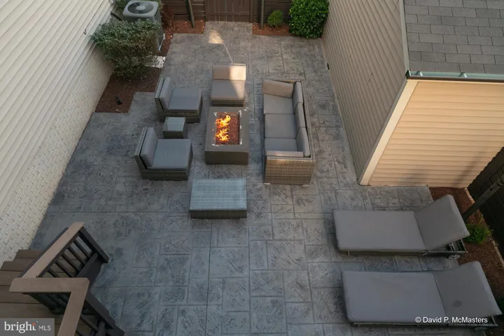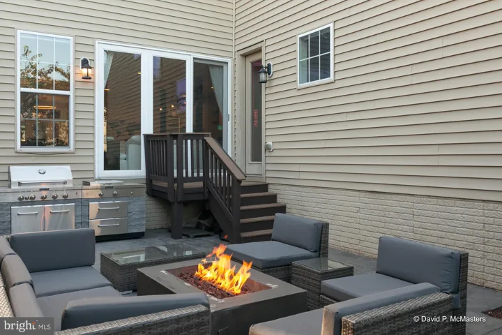 Step outside to enjoy a private backyard patio with ample mood lighting, stamped concrete, 4 fire posts, a gas fire pit and a large grill with granite countertops ideal for gatherings.