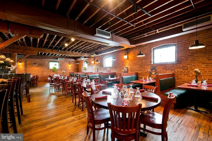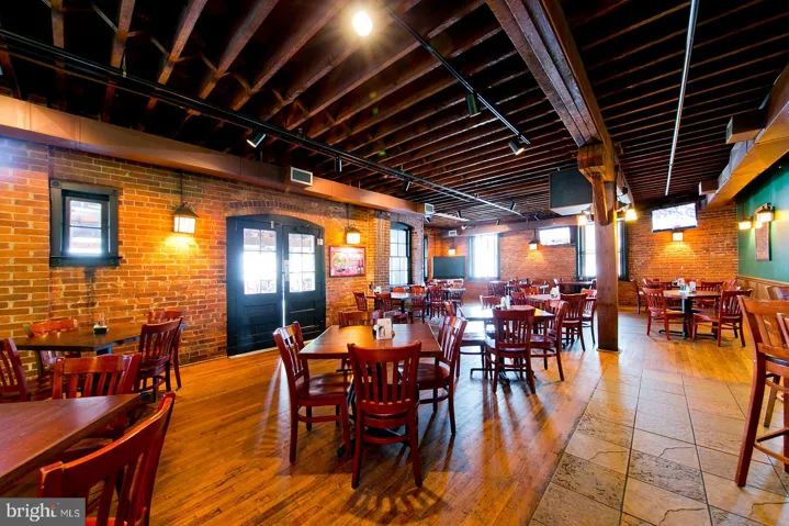 The building includes enlarge first floor sports bar that opens onto a raised outside but covered deck that looks over courtyard patio upstairs is dining and banquet room all in a renovated furniture warehouse. Convenient to the George Washington hotel this is a going concern with management and employees in place.