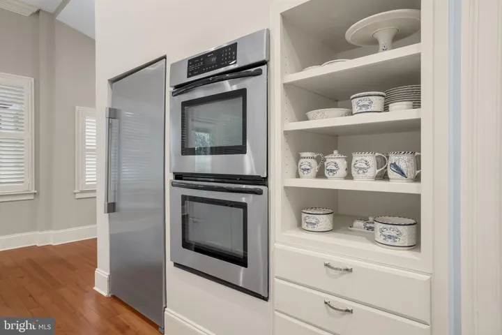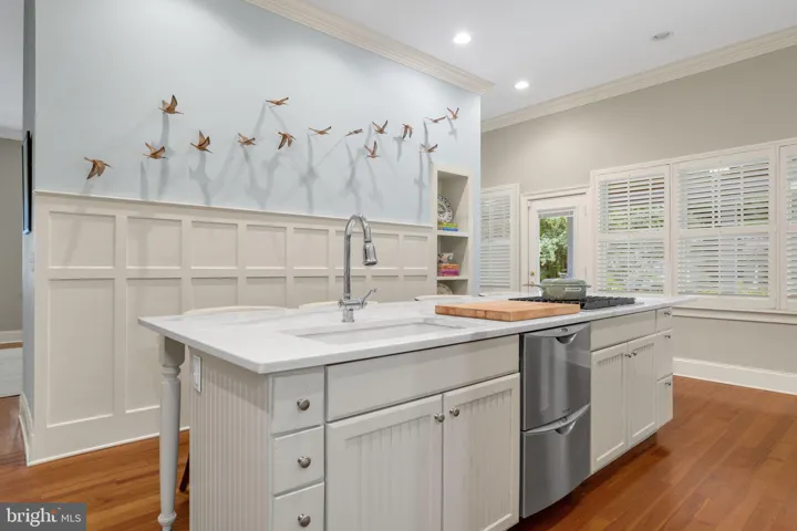 Welcome to Scott Hall, the magnificent historic 2-story home in Onancock, offering stunning water views. It has been well maintained & beautifully renovated! The open concept layout showcases plantation shutters throughout, ensuring privacy and elegance. Step into the dining area and spacious living room, where hardwood flooring and a cozy fireplace create a timeless atmosphere. The large gourmet kitchen is a chef’s dream, featuring a huge quartz-topped island, built-in cabinets, double oven, stainless appliances, oversizes butlers pantry and exquisite moldings. The main floor also includes a convenient half bath, utility room, laundry room, and a charming sitting area with built-in bookshelves perfect for reading. The primary suite on the main level boasts a beautifully remodeled walk-in shower for your comfort. Upstairs, you’ll find three more inviting bedrooms. One is a second primary suite, featuring a private bath, while the remaining two bedrooms share an additional full bath. Outdoor living is equally impressive, with a rear deck, a large, covered porch adjoining another deck, and a shed for extra storage. This home combines historic charm with modern amenities, ensuring a unique and comfortable living experience in Onancock.
