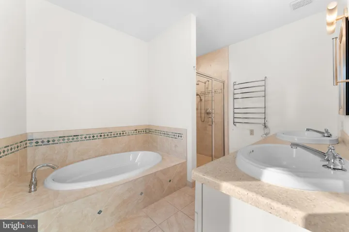 Just beyond the great room is a bright, airy bonus room with a glass sliding door and cathedral ceiling. This flexible space would lend itself to use as a media room, office, library, overflow guest room, or all four. The primary bedroom is tucked behind the kitchen and features a cedar walk-in closet and inviting ensuite bath. There is a soaking tub, shower, and heated towel rack for extra luxury. On the other side of the kitchen, the second bedroom is down a short hallway that contains the second bath. This bath repeats the beautiful tile work, complete with river stone inlay and heated towel rack. Next door is the convenient main floor laundry.
