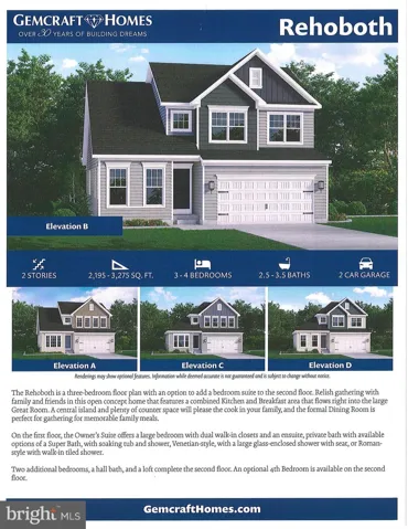 The Rehoboth is a charming home with three bedrooms and a loft or an optional fourth bedroom! Offered by Gemcraft Homes New Construction. This great home offers a first-floor owner’s suite, two- and one-half baths, a two-car garage, formal dining room, combination kitchen and breakfast area, and a spacious great room. There is also a 4-foot crawl space for additional storage. Home is TO BE BUILT. Photos may include options. Optional Elevations available to add your own personal touch. Pictures may have upgraded features. Captains Cove Golf & Waterfront Community amenities offer: 9 Hole Pristine Golf Course, 3 Pools (2 Outdoor/1 Indoor), Fitness Center, Boat Ramp, Basketball & Tennis Court, Playground, Walking & Biking Trails, Picnic Area, Dog Park, Security and such much more. Call today for your private showing