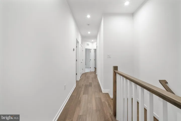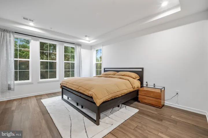 The upper level features 3 well-sized bedrooms and 2 full baths. The elegant hardwood flooring continues through the hallway , master bedroom and guest bedroom, complemented by a spacious laundry area featuring additional built-in cabinetry for extra convenience. The primary suite serves as a coffered ceiling, an upgraded modern walk-in closet, and a spa-like bathroom complete with a frameless glass shower, floor-to-ceiling tiles, and dual vanity sinks for added luxury. The sizable secondary bedrooms are conveniently located near the upgraded hall bath, which also features plush upgraded carpeting.