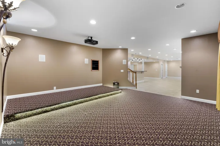 The walk-up basement is perfect for entertainment featuring a theater room, exercise room, customized bar with cabinets, wine cooler and an ice maker, a space for a pool table, one full bathroom and a large storage area.
