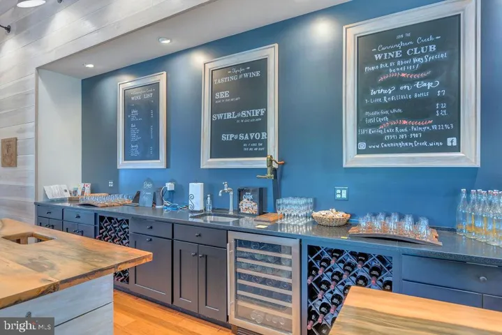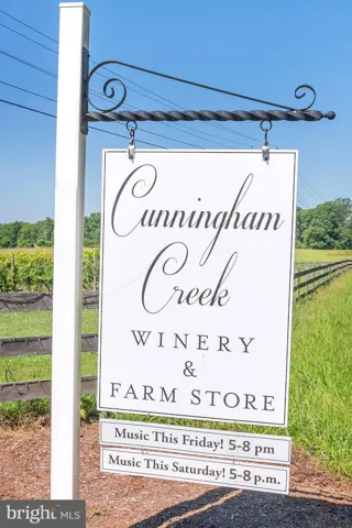 Welcome to Cunningham Creek Winery and your opportunity to own a turn-key award-winning boutique winery in the heart of the Monticello Wine Trail. Beginning in 2012, the current owners transformed this former cattle farm into a thriving destination for wine lovers near and far. The first vines were planted in 2013, followed by successive plantings to expand the vineyard to approximately 13 acres of Cab Franc, Chardonnay, Merlot, Petit Verdot, Pinot Gris, and Viognier grapes. There is space for you to expand the current vineyard on the 60+ acre property. All of the wine is made on premises in the state-of-the-art production area completed in 2017. The winery space has the capacity to produce 4000 cases annually. Current production is approximately 2000 cases per year, which allows you to increase production or gain additional income from custom crush clients. The production equipment is a winemaker’s dream, including 7 custom-made stainless-steel tanks, 100+ French oak barrels, 2000-liter press, sorting table, de-stemmer, 2 elevators, 2 pumps, a forklift, and more. The wines produced here have won many awards, including coveted gold medals from the Virginia Governor’s Cup. Approximately 98% of the wine is sold on-site to tasting room customers and CCW’s sizeable Wine Club membership. There is untapped potential to increase sales outside the tasting room by working with a distributor. The tasting room and outdoor space were designed to create an atmosphere that welcomes guests to stay awhile and enjoy their favorite wines. It was purpose-built to support visitors year-round. The ample indoor space comfortably seats 80 guests at tables & chairs, sofas & soft chairs. Guests are surrounded by art that adorns the walls and quilts from the local Piecemaker’s group. In the winter, a large stone wood-burning fireplace adds to the welcoming ambiance. A “music corner” for indoor music doubles as a children’s play area when not used for music. Snacks and unique gift items are available in the Farm Store. A private room is also regularly rented for small parties and business meetings. There are 3 restrooms inside, one with an external door, making renting additional restrooms unnecessary for most events. When you step outside, you’re greeted with a beautiful view of the vineyard, trees, and rolling hills. Again, various seating options exist on the L-shaped deck and a large manicured lawn area. The deck can seat 42 guests at a combination of table and chair sets, all with a view of the music stage below the vines. The main deck has a retractable waterproof covering. Off the deck are picnic tables, tables, and chair sets under 12 pergolas with retractable waterproof awnings. For guests who prefer small group seating, clusters of Adirondack chairs are scattered on the lawn. Again, all can see and enjoy the live music on the outdoor stage. Surrounding the pergolas, the lawn stretched to the trees, vines, and dog park, offering plenty of room for large groups to spread out and kids to play. The dog park is fenced, so dogs and their people can romp freely. There is a water pump and, in summer, a dog pool in the dog park. Cunningham Creek Winery is perfectly constructed to offer many special events, including weekly live music, food trucks, and yoga. Team trivia and music bingo are offered monthly and have a large following. The large, ample seating in the tasting room and outside allows live music to proceed year-round despite the weather. There are various annual events throughout the year where CCW partners with community non-profit organizations. The annual Harvest Fest boasts a one-of-a-kind mini-pumpkin slingshot, and the Easter Cork Hunt with a visit from “the real” Easter Bunny is among the highly anticipated yearly events. If you’ve ever dreamed of owning an award-winning winery with a talented and experienced winemaker and staff, Cunningham Creek Winery is waiting for you!