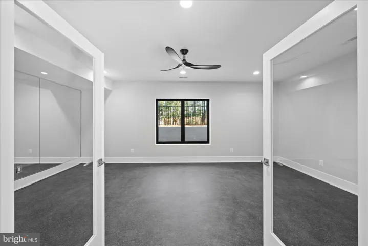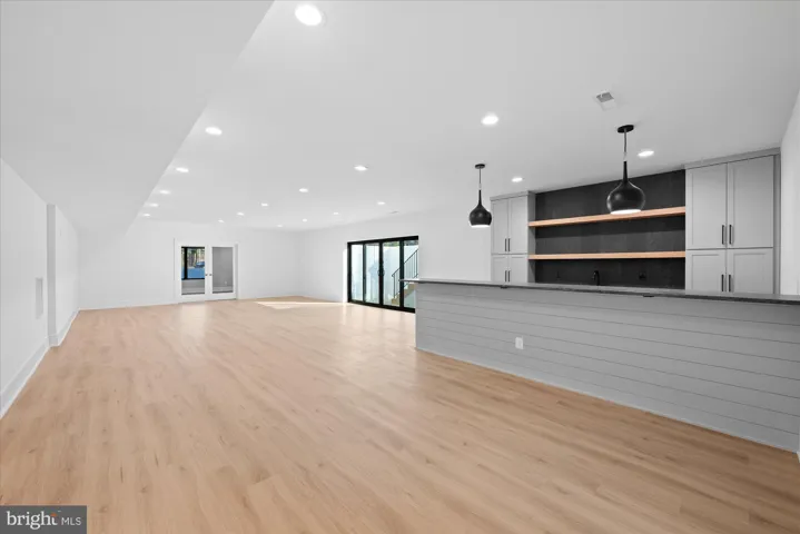 large Recreation Room w/ LVP flooring; Bar area featuring sink, beverage refrigerator, dishwasher and leathered granite countertop; Exercise Room (or Bedroom #7) with double doors, large egress window, mirrored wall, and rubber floor tiles; Bedroom #6 with large closet and Full Bath with tub en-suite; Powder Room (2 of 2); access to 3-car garage (under home for an expansive main level) just 1 steps up to Mud Room with built in cubbies; large Utility/Storage Room; Elevator to all levels