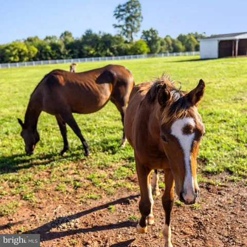 10-Stall Center Aisle Barn: Updated tack room and stalls that open directly to sacrifice lots and pastures.