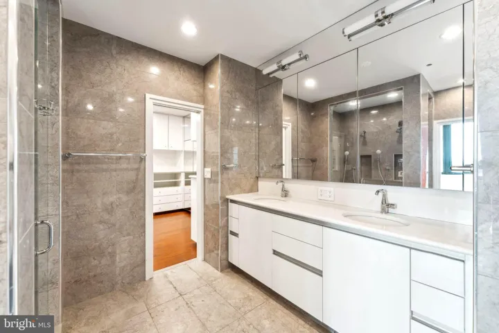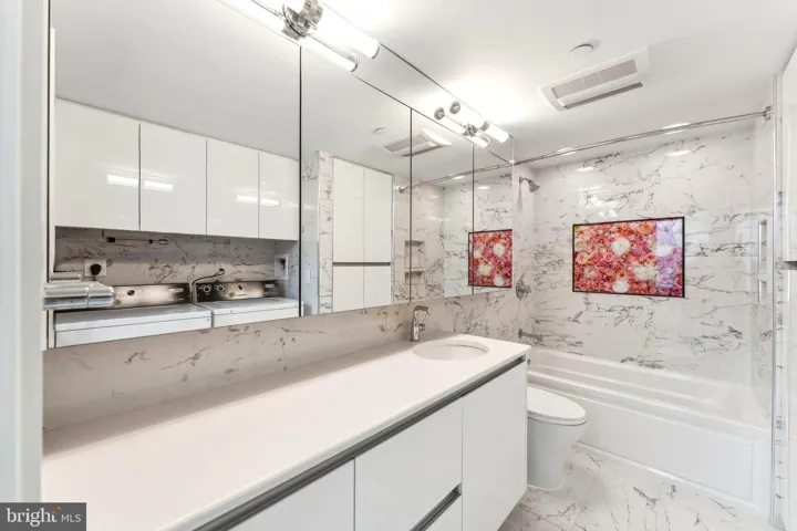 Rare, first floor, bedroom and full bathroom with access to the balcony provides flexibility for guests or multigenerational living. Second floor bonus room with wood burning fire place could be used as either bedroom, den, or home office. All bathrooms, freshly renovated & spa-inspired with heated floors, Toto toilets, glass-enclosed showers with dual shower heads and upgraded tile & vanities.