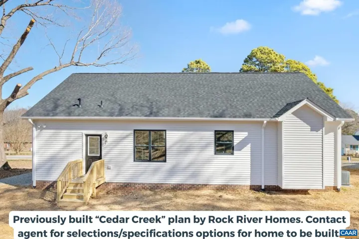 To be built… Are you looking for the perfect new home under 450k? Look no further. The home shown is a home by Rock River Homes Cedar Creek Elevation B with over 7 acres of privacy in the highly sought after area of \ Amelia County. The Cedar Creek plan includes CATHEDRAL CEILINGS in main area, and 9 ft ceilings in the BEDROOMS, LVP flooring throughout, an OPEN CONCEPT floor plan that includes a beautiful ISLAND and STAINLESS STEEL appliances. Of course, you don’t have to go with the Cedar Creek, you could pick any of Rock River plans and put it on this large lot. Take one of Rock River plans and customize it to your liking! Close to Chesterfield shops and interstates. This won’t last long so check this beautiful lot out ASAP!