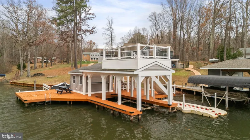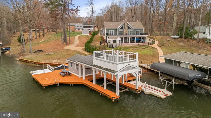 Discover your dream waterfront retreat on the public side of Lake Anna—perfect as a full-time residence, weekend getaway, or exceptional investment property. This spacious rambler sleeps up to 25 people and features main-level living with a cozy living room and wood-burning stove, an updated kitchen with stainless steel appliances and granite countertops, a separate dining area with water views, and a sunroom. The main level offers 3 bedrooms, an additional office/den, 2 full baths, and a laundry room. The finished lower level includes 1 additional bedroom, multiple additional multi use/bonus rooms, a second kitchen another laundry room, and a private ensuite with exterior access only. The property includes an oversized 4-car garage, a 2-car or RV carport, and parking for 20+ vehicles. Outdoor amenities abound with an in-ground pool, hot tub, sandy beach, double-decker dock with electric hoist boat slip, floating boat dock, jet ski dock, sundeck, and boathouse. A paved path leads to a storage shed with space for water toys and a golf cart. This turnkey brick rambler is the ultimate escape with space, comfort, and unbeatable lakefront fun. See the attached rental projection!!!