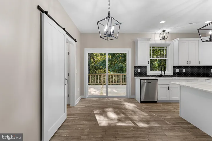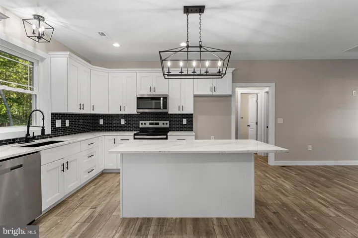 This beautiful ranch-style home offers a modern and stylish design with an open floor plan and LVP flooring throughout. The great room connects beautifully to a stunning kitchen, which features white shaker cabinets, quartz countertops, an eye-catching black backsplash, stainless steel appliances, a large island, and a barn door concealing the laundry/mudroom.