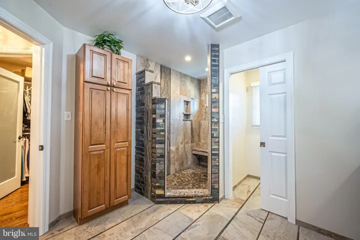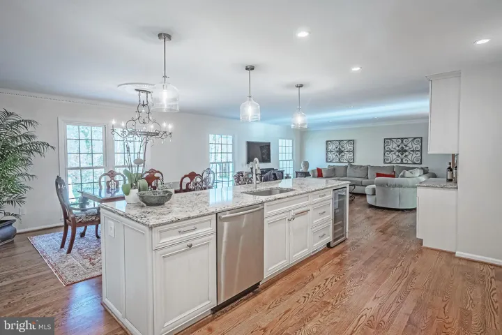 Sited on a serene half-acre cul-de-sac lot, backing to 15 acres of protected woodlands in Langley Oaks, this remodeled and expanded home offers a rare opportunity for refined one-level living. A flagstone courtyard and glass double front doors introduce an open floor plan with rich hardwood flooring. To the left of the foyer, a formal living room showcases a dramatic stacked stone fireplace. Straight ahead lies a spacious family room seamlessly integrated with the rest of the home. Cream cabinetry, granite countertops, a travertine backsplash, and professional-grade stainless steel appliances, including SubZero, Monogram, and Bosch, define the fully remodeled and enlarged kitchen. A large center island with breakfast bar seating connects to the formal dining room and family room, creating an ideal layout for entertaining. The breakfast room includes a pantry, while sliding glass doors in the dining room lead to a tranquil screened porch. Impressing with a double-tiered tray ceiling, cove lighting, crown molding, and sliding doors to a private balcony overlooking the pool and woodlands, the primary suite serves as a luxurious retreat. A custom walk-in closet and remodeled spa-like bath with a double vanity, granite countertops, and a walk-in shower complete the suite. Three additional bedrooms share a well-appointed hall bath, while bedroom four, featuring built-in desk and shelving, is perfect for a home office. A spacious laundry/mudroom with garage access completes the main level. Updated to provide additional living and entertaining space, the walk-out lower level features solid hardwood built-ins in the game area and a recreation room flowing into a full bar with cherry cabinetry, granite countertops, a sink, Kegerator, and wine refrigerator. Hardwood-style LVP flooring extends into the billiards room, which includes built-in cabinetry, and sliding doors to the covered patio. This level also offers a full bath, a fifth bedroom with a walk-in closet, and ample storage. A private oasis awaits outside, with a slate patio leading to the pool level. Stone hardscaping, a waterfall fountain, and an inground pool framed by an expanded pool deck and covered patio blend harmoniously with the lush surroundings. Professionally landscaped grounds provide commanding views of the parkland. Moments away, Tysons Corner offers upscale shopping, fine dining, and premier entertainment. Commuting is effortless with access to Georgetown Pike, George Washington Parkway, I-495, I-66, Dulles Toll Road, and the Silver Line Metro. Washington, D.C. is just 10 minutes away. Nature enthusiasts will appreciate the proximity to a 150-acre wooded preserve with hiking trails and Clemyjontri Park, a world-class playground, just three minutes away. Experience the perfect blend of luxury, privacy, and convenience in this exceptional residence. Replaced Roof & Windows. Churchill Road Elementary, Cooper Middle, and Langley High School.