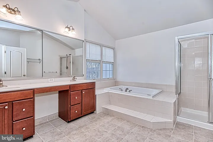 Upstairs, the luxurious master suite includes a private sitting room and a spa-like master bath, complete with a soaking tub, separate shower, dual sinks, and a sit-down makeup vanity.