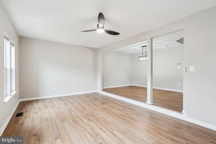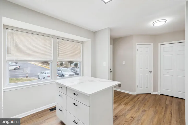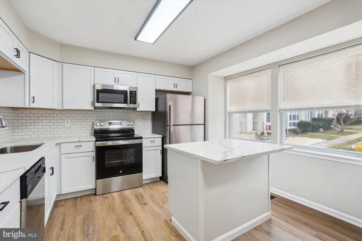 As you enter the premises, you arrive in the Foyer with a redone Powder Room and spacious closet to your left, but more importantly, you arrive at the newly remodeled White Kitchen which has been opened up for a more spacious living and congregating space with a separate central island for both seating as well as containing much needed additional storage space. The white cabinetry includes state of the art soft close drawers and cabinets as well as a full size pantry ! Both the kitchen and island countertops are state of the art Quartz material, with a beautifully done complementary white tile backsplash. There are new state of the art stainless steel appliances also. The Dining Room and Living Rooms are nicely done with the new paint , LVP Planking, as well as the Black Pendant Dining Room Fixture as well as the new BlackFan/ Light Fixture in the Living Room.