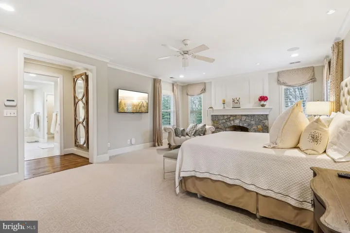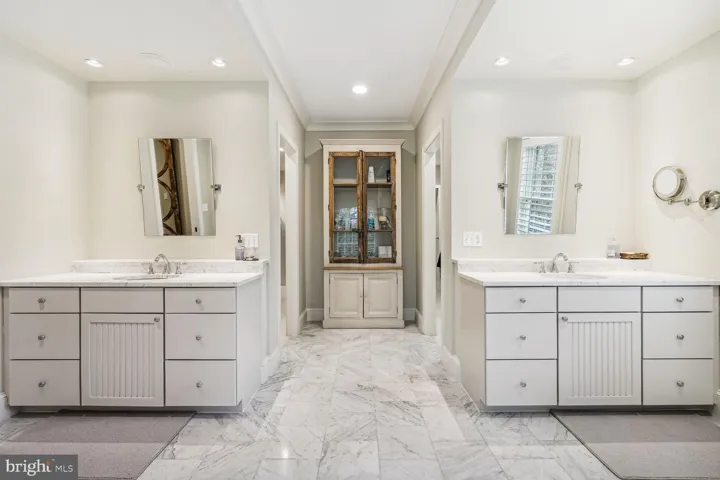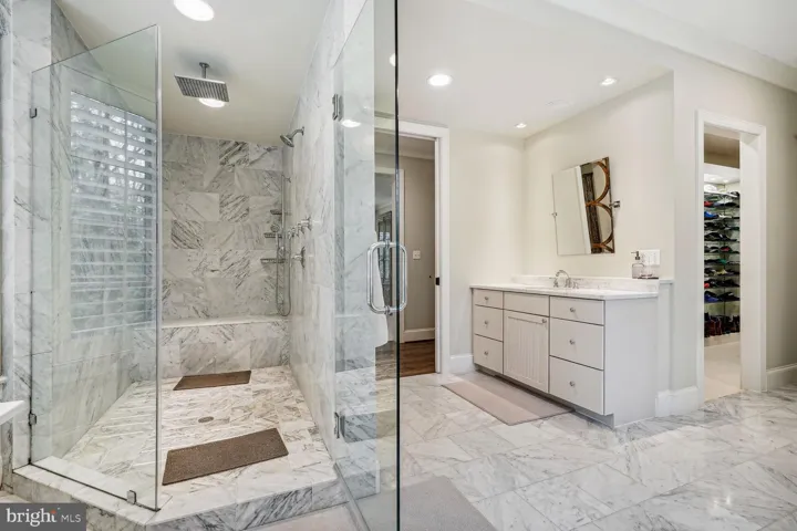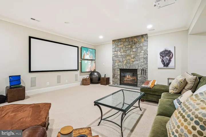 Upstairs, the primary bedroom offers a wood fireplace, luxurious primary bath with marble floors, soaking tub, separate shower, and a stunning custom dressing room/closet. Two additional bedrooms on the second level each have private baths and walk-in closets, while the upper-level recreation room is the perfect space for an office, home gym, or bedroom suite with its own bathroom and walk-in closet.
