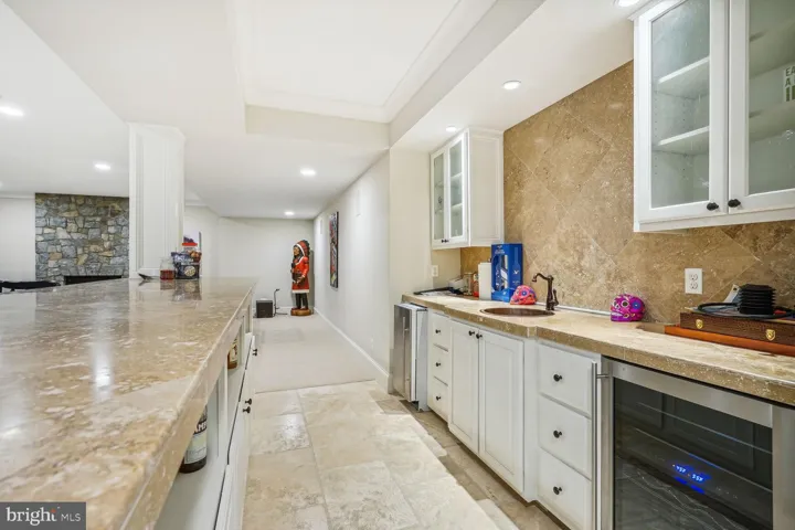 The lower level is equally impressive, with a recreation room featuring a cozy gas fireplace, built-in television projector, screen, and surround sound. There’s also a wet bar with a marble top, beverage fridge, and a private guest bedroom with its own bath. For added convenience, the lower level includes a large utility/storage room and a powder room. Walk-out access leads to a flagstone patio, making outdoor entertaining a breeze.