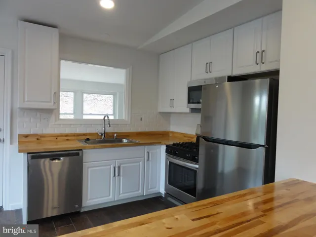 The updated kitchen features new cabinets, butcher block countertops, and stainless steel appliances, while the open layout is enhanced by recessed lighting, creating a bright and welcoming living space. The home has been freshly painted. It is equipped with a new gas furnace and new air conditioner for year-round comfort, along with newer windows that enhance energy efficiency and natural light.