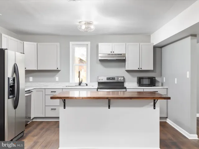 The main home features 1,769 square feet of living space with four bedrooms and two bathrooms, including a main-level primary suite with an attached full bath. Recent updates include new LVP flooring, new windows, fresh paint, a new roof, and a newly fenced-in backyard with underground gutter drainage. The fully remodeled eat-in kitchen includes new stainless steel appliances, butcher block countertops, and white cabinetry. Freshly black-topped driveways provide a sleek finish.