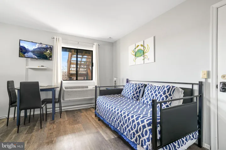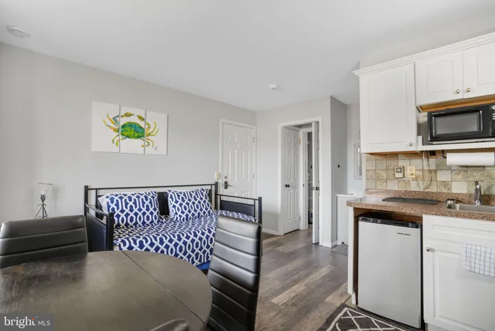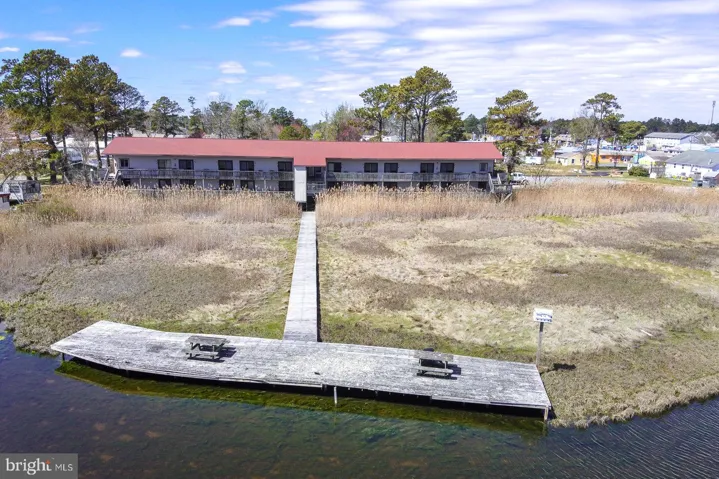 Welcome to this beautifully renovated 2-bedroom, 2-bath waterfront double efficiency unit at the Assateague Inn. This unique property seamlessly combines two efficiency units connected by an adjoining door, offering convenience and privacy. Both units feature a shared kitchenette equipped with a modern tile backsplash and microwave, perfect for quick and easy meals. The entire space boasts sleek LVP flooring, lending a modern and clean aesthetic. The main area includes a sink with vanity and a full bathroom, ensuring comfort and convenience. The adjoining unit offers a spacious second bedroom with private access from the outside, ideal for guests or personal use. Each unit is equipped with its own separate heating and air conditioning system, allowing for individual climate control. Enjoy picturesque waterfront views and the convenience of a dock, perfect for nature enthusiasts. There is also an outdoor pool for relaxing on those hot summer days! Located in proximity to charming island shops, delightful dining options, the natural beauty of the refuge, and stunning beaches, your retreat awaits!
