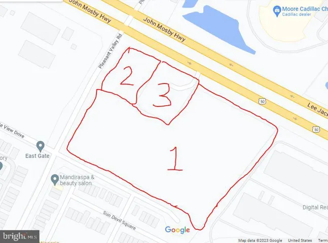 Three lots, 09710625100 (data shown in this listing), 09710558800(data not shown), 09710369500(data not shown), 7.3 acres, 0.99 acres and 0.78 acres at the intersection of Pleasant Valley Rd and John Mosby Hwy (Route 50), just across Loudoun/Fairfax boundary, next to Digital Realty Data Center (Lafayette Center Dr / Fairfax county). Zoning – CLI – COMMERCIAL LIGHT INDUSTRIAL.
