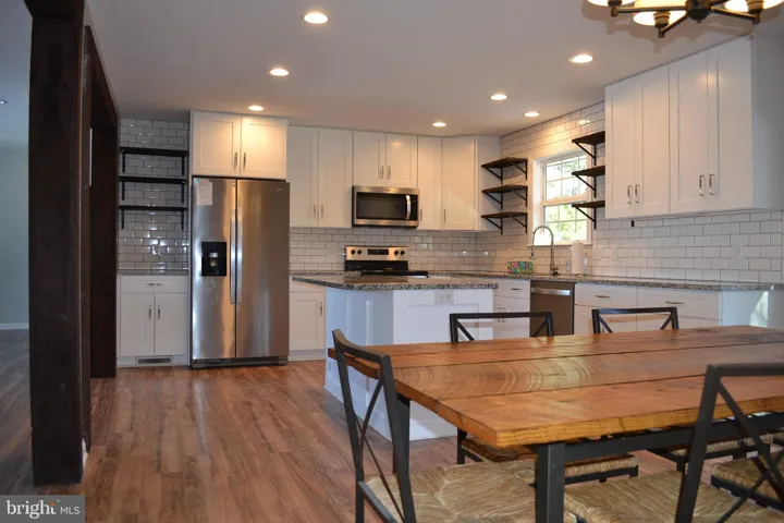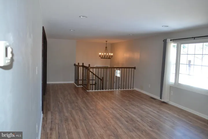 A covered and well-lit front porch protects you from the elements as you access the home through the front door to the foyer area. Or access the foyer from the large 2 car garage. Go up the stairs to the upper level into a large open concept great room. Enter the kitchen that was renovated in 2018. Upgrades include granite countertop, recessed lighting, ceramic tile backsplash, laminate flooring, 42” wood cabinets with soft close drawers and cabinets, SS appliances, walk-in pantry, island with granite countertop and more cabinet storage, coffee nook and chandelier. A large 20 x 16 deck off the kitchen provides ample opportunities for grilling, morning coffee or just relaxing. Stairs off the deck provide access to the back yard or the covered patio below the deck.