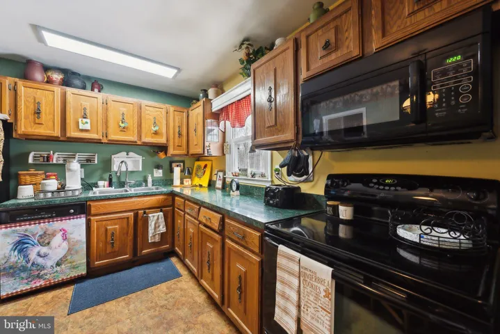 Inside, you’ll find a welcoming living room centered around a classic wood-burning fireplace, perfect for cozy evenings. The kitchen, though compact, offers a solid foundation to design a space that suits your style. The adjacent dining area makes for an ideal spot to enjoy family meals or entertain guests.